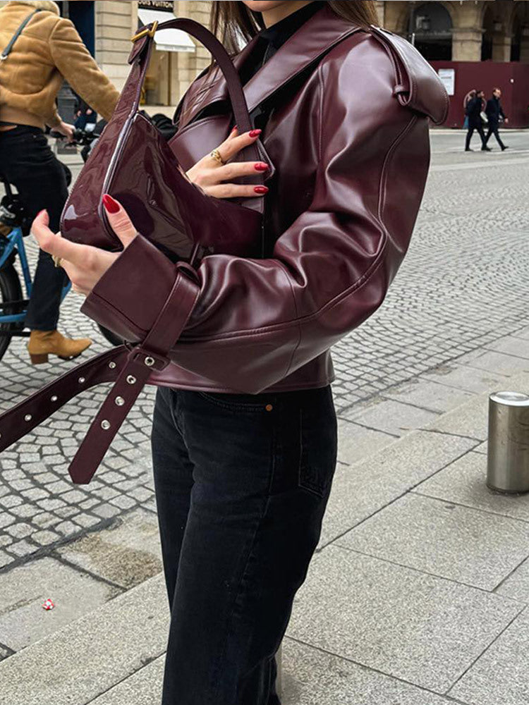 - Stoere motorfiets-stijl – korte lengte en taille-omhullend model